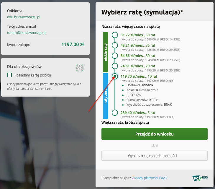 Instrukcja płatności ratami 0%