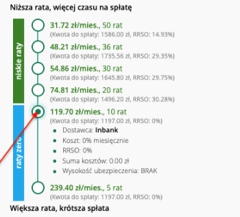 3. Na kolejnym ekranie wybierz 10 lub 5 miesięcznych rat. Następnie przejdź do wniosku: